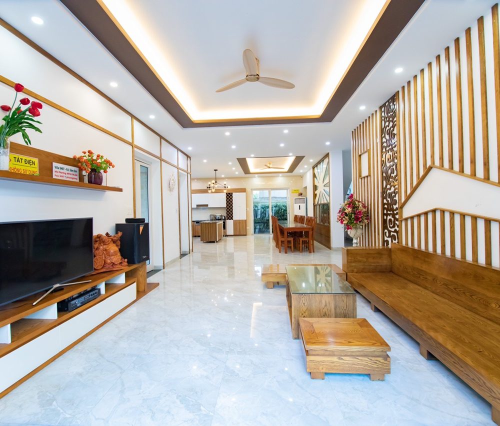 ✓ 1 phòng khách rộng : Tivi 65in, truyền hình internet TV, Điều hòa, Quạt cây, Wifi, Bàn ghế tiếp khách uống trà, Karaoke, WC)