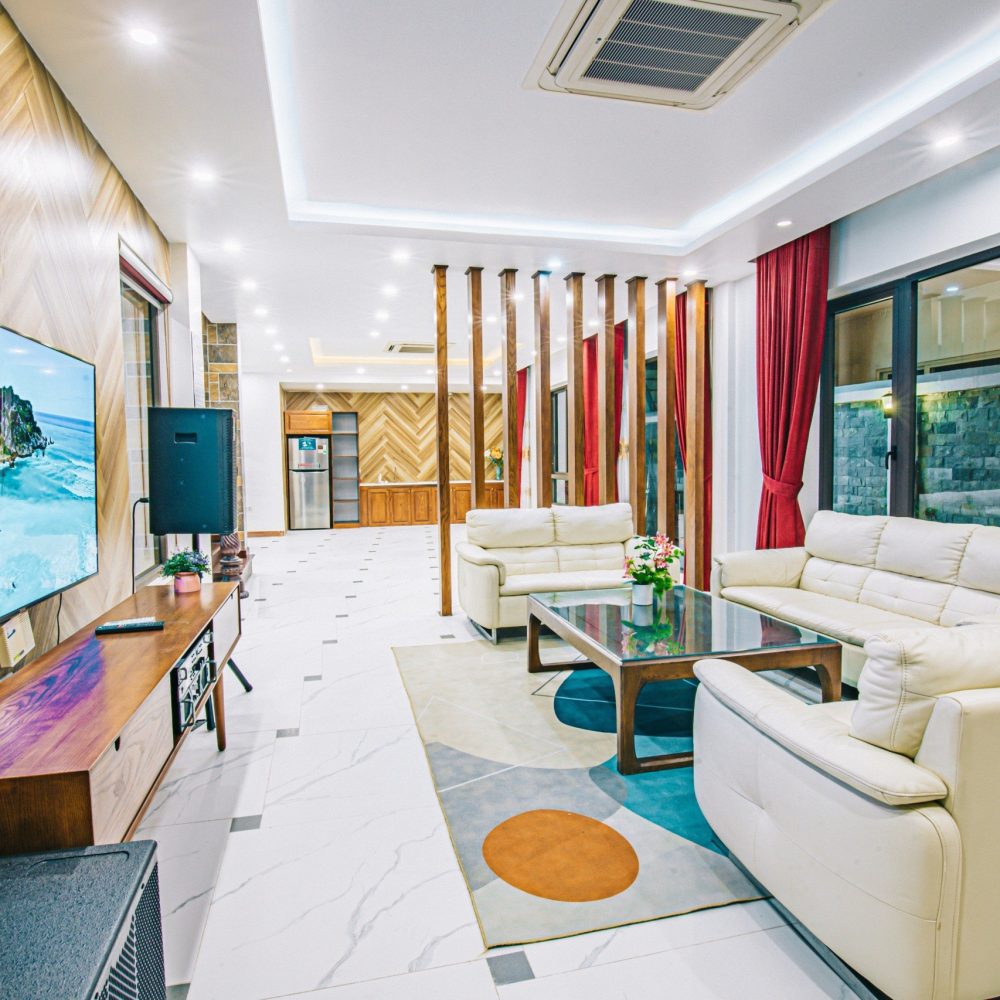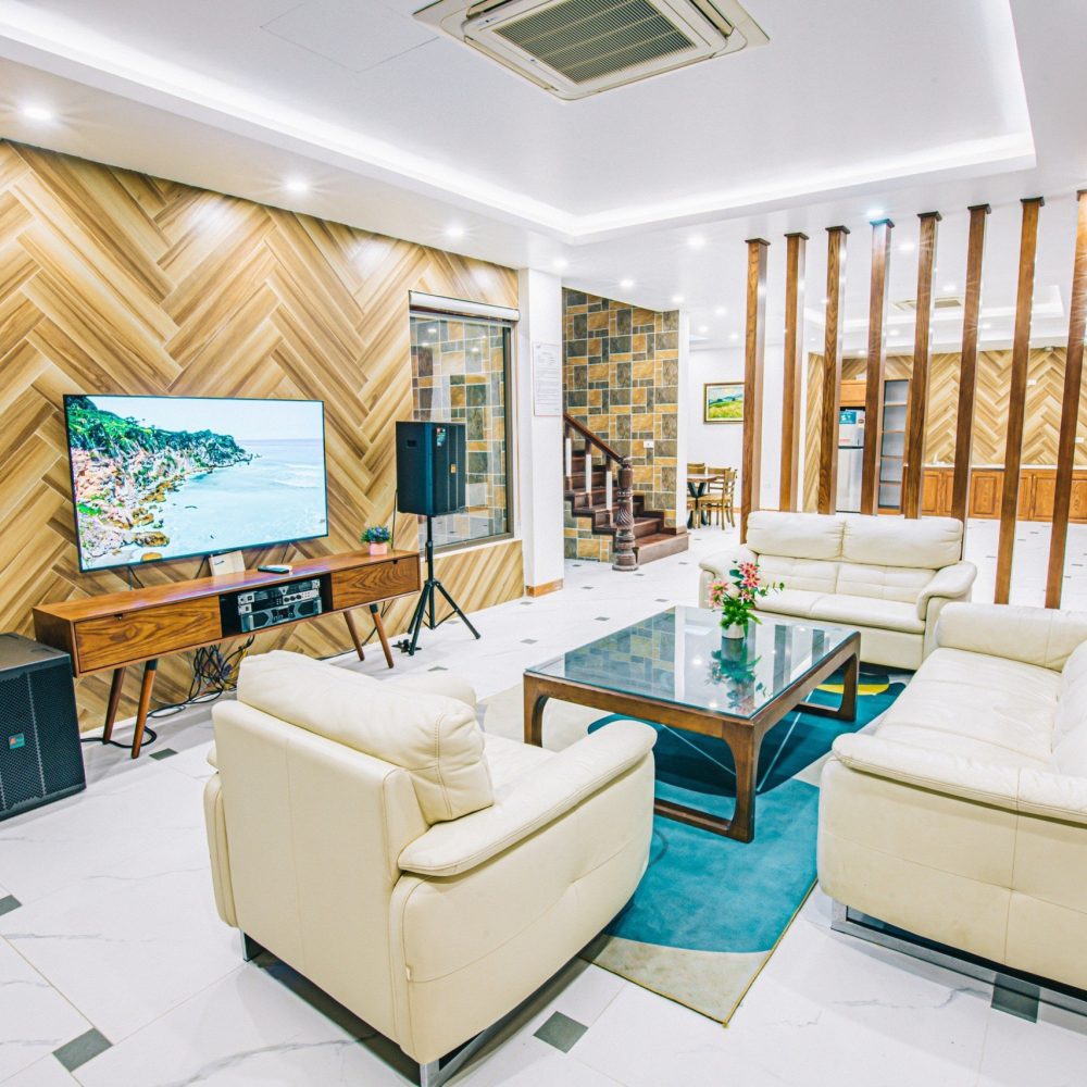 ✓ 1 phòng khách rộng : Tivi 65in, truyền hình internet TV, Điều hòa, Quạt cây, Wifi, Bàn ghế tiếp khách uống trà, Karaoke, WC)